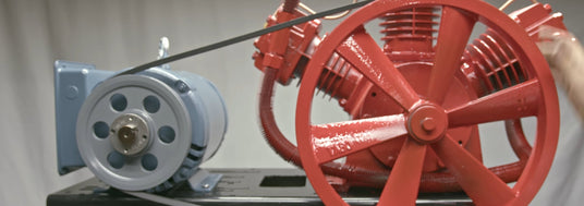 The belt drive is the mechanical link between the motor and the pump. Proper selection and installation of pulleys and belts directly determine the pump's operational RPM — and therefore its CFM output and longevity.